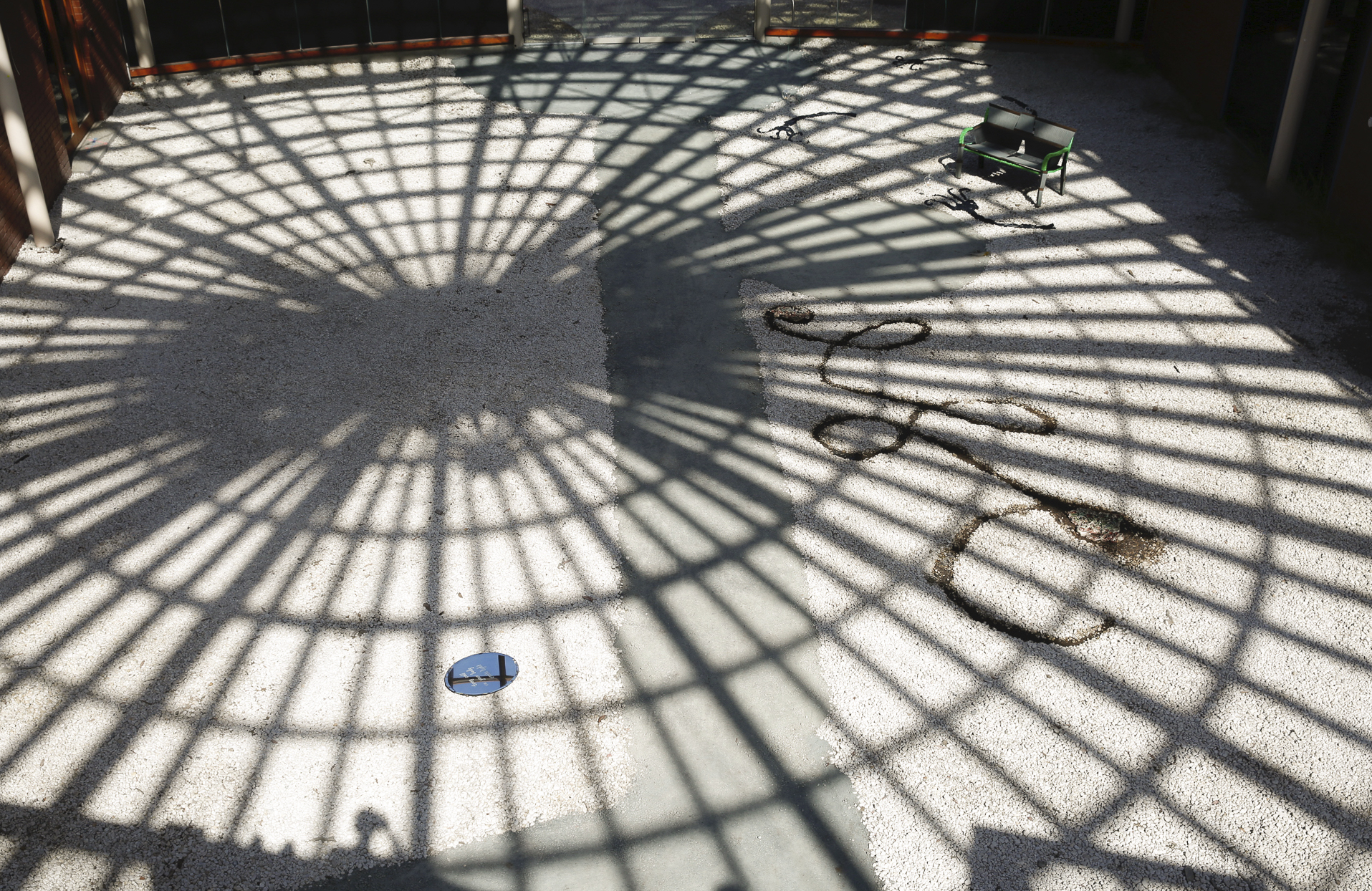 Brighid Fitzgerald, Garden Camo (2019). Park bench, garden boxes, garden wire, polymer clay peas, blue tac